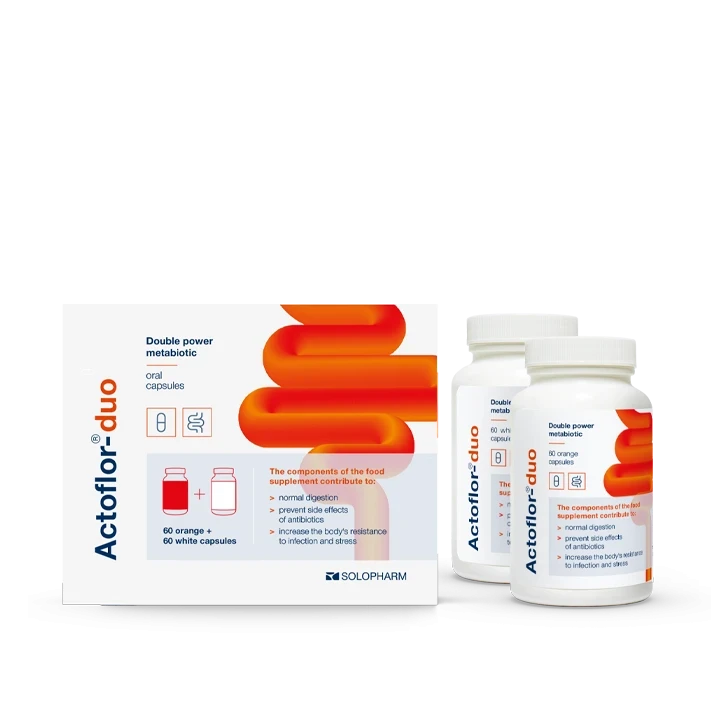 АКТОФЛОР-ДУО (Actoflor-Duo) - Биологически активная добавка (БАД) к пище - метабиотик двойной силы, нового поколения представляющий собой комплекс аминокислот и органических кислот - аналогов метаболитов пробиотических бактерий.