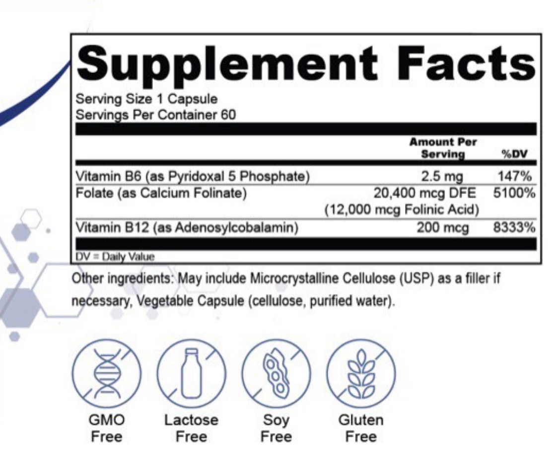 ✅ Уникальный состав: Каждая порция (2 капсулы) содержит фолиевую кислоту в активной форме (фолиниевую кислоту), предназначенную для поддержки метилирования — процесса, важного для синтеза нейротрансмиттеров и развития мозга. Формула разработана с учетом потребностей детей с РАС, включая тех, у кого могут быть мутации гена MTHFR, затрудняющие усвоение синтетической фолиевой кислоты. Точные ингредиенты могут варьироваться, но акцент сделан на биодоступных формах витаминов группы B.