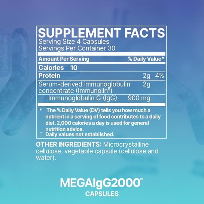 Эта уникальная альтернатива бычьему молозиву поддерживает здоровую иммунную систему слизистых оболочек, поддерживая здоровую барьерную функцию кишечника. Сывороточный иммуноглобулин Mega IgG 2000 был предметом более чем 10 опубликованных клинических испытаний на людях.