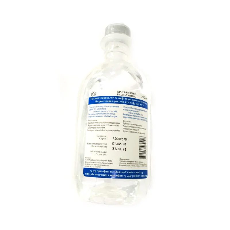 Раствор для инфузий, 0.9% по 100 мл, 200 мл, 250 мл, 400 мл и 500 мл препарата во флаконы из полипропилена с петлей - держателем, укупоренные полипропиленовыми крышками с резиновой подкладкой и снабженные колпачком с отрывным кольцом для вскрытия, наваренным на флакон.