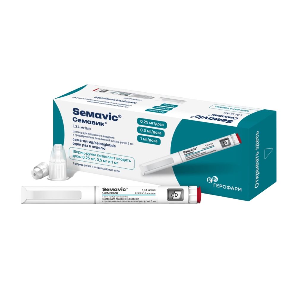Предварительно заполненная шприц-ручка Семавик® позволяет вводить дозы 0,25 мг, 0,5 мг и 1 мг.